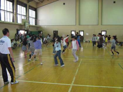 親子交流として,親子で大縄大会をしました。みんな上手にとべたかな?