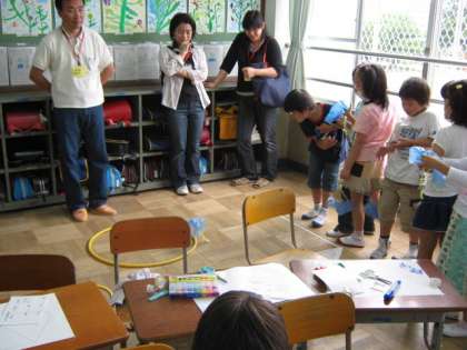 ステキな落下傘ができました。的の中にうまく着陸できるかな?