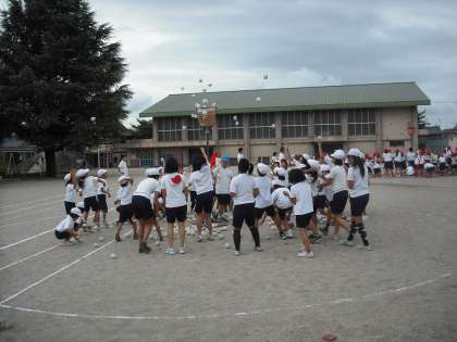 綱引きに引き続き,縦割り種目「玉入れ」の練習です。勝ちたいために終わりの合図が鳴っても,球を投げてしまいます。フェアな戦いをするために,違反があれば減点になってしまいます。ルールを守って頑張りましょう。