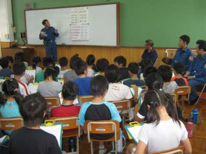 先日は,北消防署の見学をしましたが,今日は地元の待鳳消防分団の方々からお話をうかがいました。自分たちの生活のほんとうに身近なところで,安全なくらしを守っている人々の苦労や努力を知ることができました。