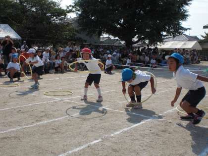 個人走「エルマーのぼうけん」 輪くぐり,ゴム跳び,ボールはさみ・・がんばれがんばれ!