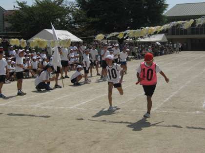 中学年のリレーです。男子の部・女子の部,それぞれ力いっぱいの走りに,応援も盛り上がります。