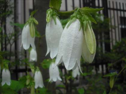北山通のグリーンベルトにホタルブクロが咲きました。ホタルブクロはキキョウ科の多年草です。初夏に写真のような大きな釣り鐘状の花を咲かせます。