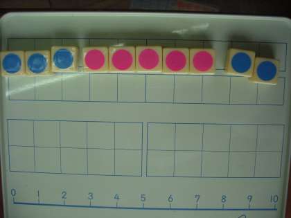 算数的活動を通して,3つの数をたしたりひいたりする計算を1つの式に表す方法を考えられるようにする学習を進めています。