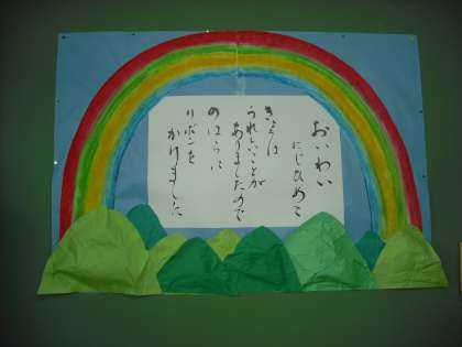 今日は朝の読み聞かせ後,図書ボランティアさんの定例会が開かれました。今後の活動について話し合いがもたれましたが,図書室の壁面のかざりも一つ作ってくださいました。昼休みに図書室に来た子どもたちはすぐに気が付き,「新しいのができてる。」と喜んでいました。ありがとうございました。
