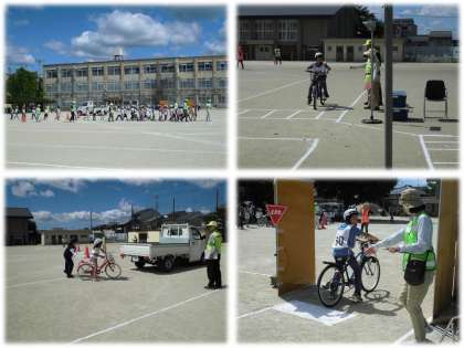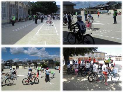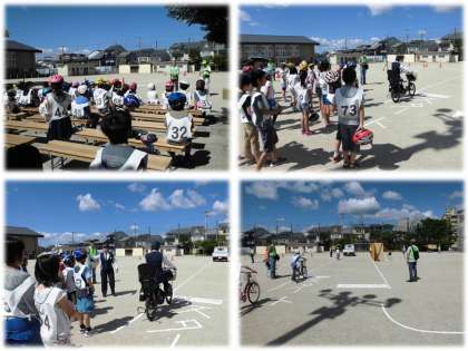 今日は気持ちのよい晴天の中で,待鳳交通安全推進会の主催で自転車教室が行われました。