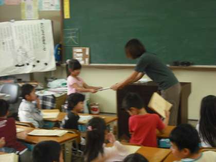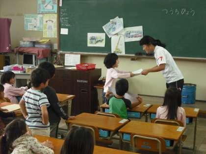 今日は前期の終業式です。1年生にとっては初めて通知票です。一人ひとり,担任の先生から声をかけてもらいながら通知票をもらいました。お家の人と一緒に前期を振り返って,後期に向けて頑張ることを考えましょう。