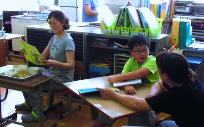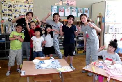 毎週金曜日は仲よし学級全員で給食を食べる日ですが,先々週から教職員の方に声を掛けて一緒に給食を食べてもらう,という交流を始めました。初回は瀬川校長先生,2回目は事務の吉田さんに来ていただき楽しくお話をしながら給食をいただきました。今回はいつもおいしい給食を作っていただいている給食調理員の山内さん藤田さん来海さんに来ていただき,カレーうどんを楽しくいただきました。子どもたちはたくさんおしゃべりをしたり,仲よし文庫を読んでもらったりして,とびきりおいしい給食をいただきました。