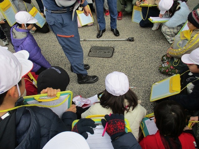 1月14日(水)3年生が社会科「安全なくらしを守る」の単元の学習の一環で、消防署に見学に行きました。消防署内の整理された様子をみたり、実際に消防に使う道具を手に持たせてもらったりして子どもたちは興味深々でした。消防署の方の話を聞いたり、質問したりして学びを自ら進めようとする姿も見られました。今日の体験を生かして、より良い学習にしていってくれると思います。