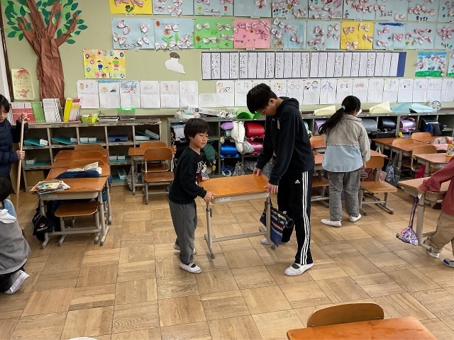 1月20日(火)にたてわり掃除を実施しました。たてわり班にメンバーで教室や廊下などを分担しながら協力して頑張っていました。「こっちもってくれる」「ここは退けてから拭こうか」と高学年の子たちが中心になって頑張ってくれていました。低学年の子たちも率先して掃除に取り組んでいて学年関係なく協力できる姿が素敵でした。