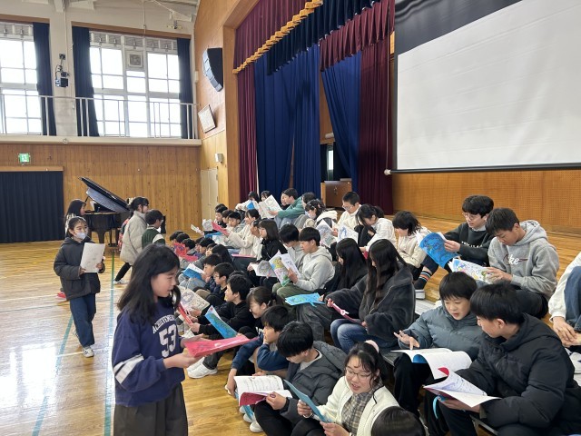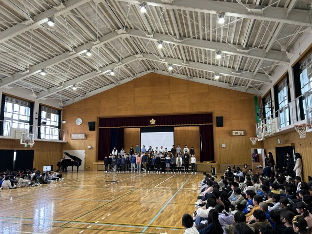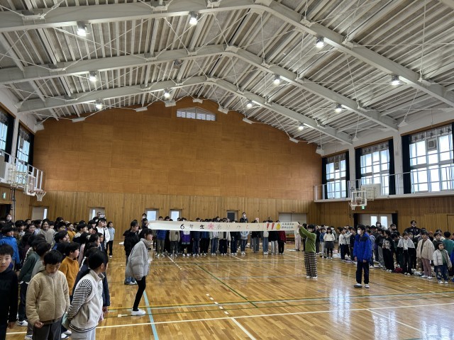 3月10日(火)の3時間目に6年生を送る会を実施しました。各学年から、6年生への感謝の気持ちがあふれる言葉や歌の出し物があり、とても温かい雰囲気の会となりました。6年生からも各学年に向けた、思いのこもったメッセージがあり、お互いを大切にする気持ちが伝わってきました。6年生の合唱「3月9日」のきれいな歌声に感動しつつも、寂し気持ちが会場の中にあふれていました。たてわりグループのメンバーからお礼のメッセージが渡されると少し照れくさそうにしながらも早速読んでいる様子が見られました。最後にはサプライズで全校合唱「感謝カンゲキ雨嵐」歌い、とても素敵な時間となりました。これまで、学校にために様々な取組みをしてきた6年生の姿が、きっと全校児童に伝わっていたのだと思います。中学校での活躍をみんな応援しています。