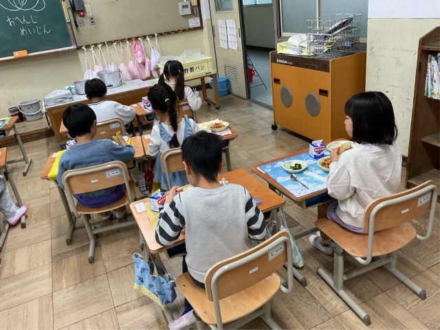 4月15日(水)本日から給食を開始いたしました。久しぶりの給食でしたが、子どもたちは、準備を協力して行いスムーズに食べることができました。1年生にとっては初めての給食でしたが、先生の話を良く聞き、一生懸命給食の準備を行っていました。給食を食べ始めると、「おいしい」「おかわり!」という声が聞こえてきました。時間内に食べ終わり、後片付けも頑張っていました。しっかりとした姿に驚きました。今後も、給食を美味しく食べて、すくすくと成長していって欲しいです。