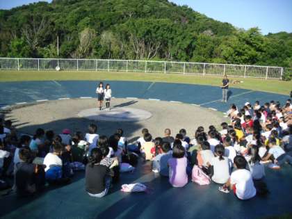 4校合同で朝の集いを行いました。各校の校歌を聞きあったあと,学校紹介があり,それぞれの学校の良さをどの学校もしっかり発表することができました。