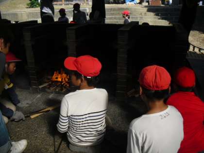 昼食を食べた後,野外炊事でカレー作りを行いました。練習の成果が出て,丁寧に野菜を切り,カレーを煮込みます。なかなか思い通りにならない火を,火の係りの児童が頑張ってお鍋にあたるように工夫してどのグループもおいしいカレーが出来上がりました。