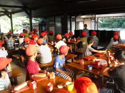 2日目ナイトハイクの出発時の集合の様子です。3日目朝食もしっかり食べ,お掃除も済ませました。さわやかな朝です。