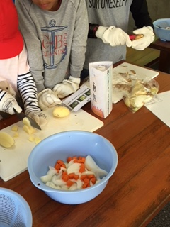 午後からの活動は野外炊事です。事前学習の経験を活かして作業もはかどります。