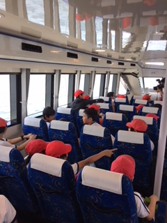 名古屋港水族館の見学・昼食を終えて,師崎港から高速船で日間賀島へ移動しています。
