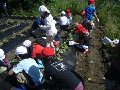 静原の堀内さんの畑でサツマイモの苗を植えました