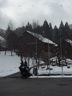 花背山の家に無事到着しました。バスが山深く進むにつれ,雪が深くなり車内で歓声があがっていました。今は降っていませんが,たっぷり積もった雪で楽しく活動できそうです。
