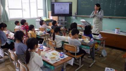 15日(月)1年生 給食の様子