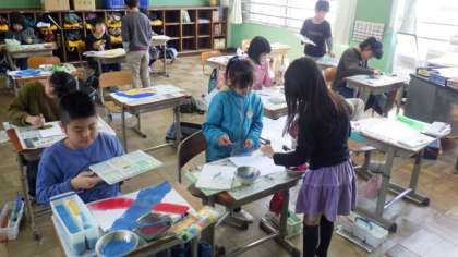 16日(火)4年図画工作「絵の具でゆめもよう」