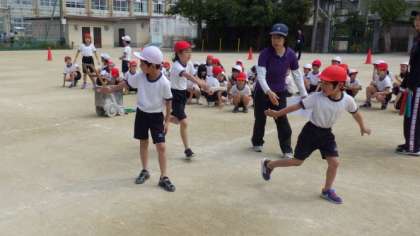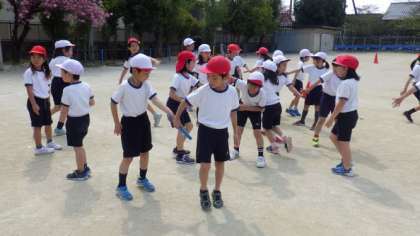 グループでバトンパスの練習をしたり,リレーをしたりしています。