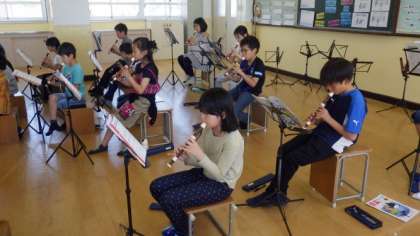 6年生は社会で,米づくりの広がりによって,むらの様子はどのように変わったのかについて学習しています。4年生は音楽の学習で,リコーダーの練習をしています。