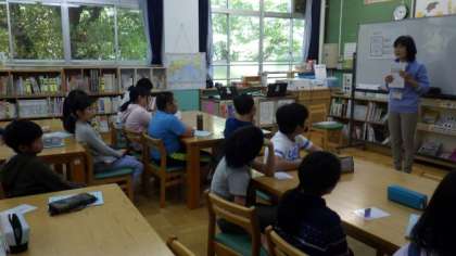 5年生が学校司書の先生と学習しました。利用の仕方や本のラベルなどについて学習しました。
