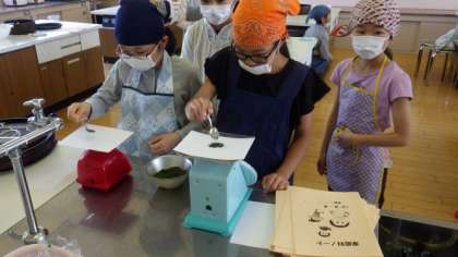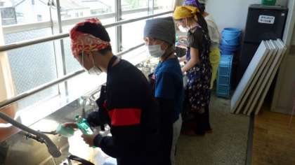 お茶をいれる調理実習をしました。茶葉や水を量ったり,やかんやきゅうすを洗ったりなど,友達と分担して手際よく実習をしていました。