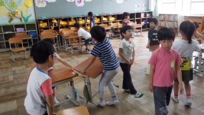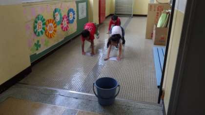 いつもしっかりと掃除をしています。1年生は,いつも掃除に来てくれる6年生が修学旅行でいないので,自分たちで掃除をがんばっていました。