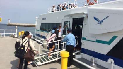 予定通り,師崎港に到着しました。船に乗って,日間賀島へ向かいます。