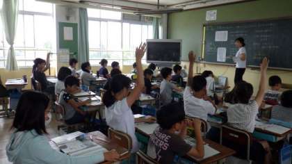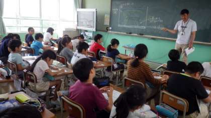 5年1組は社会で,輪中に住む人々が昔から,くらしをどのように守ってきたのか調べています。5年2組は理科で,メダカの飼い方について学習しています。