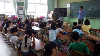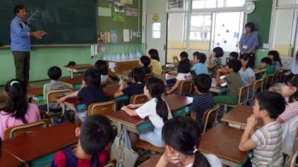 来週の校外学習でのサツマイモの苗植えに向けて,地域の方を講師にお招きし,サツマイモについてのお話をしていただきました。子どもたちは楽しみにしているようで,たくさん質問をしていました。
