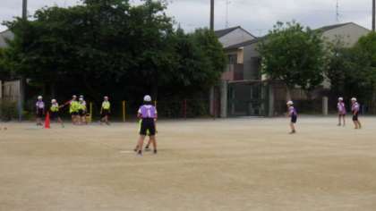 ベースボールのルールを確認しながら,相手チームとのゲームを楽しんでいます。
