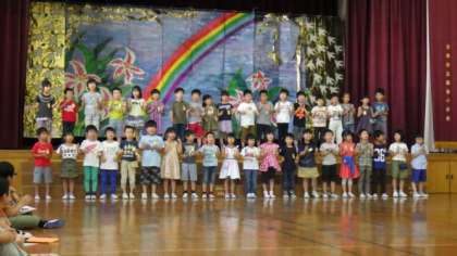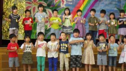 最後に,1年生からのお礼の出し物を発表しました。元気な声で言葉を言ったり,歌ったりして,楽しく発表していました。