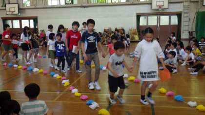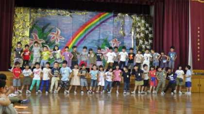 本部会の児童の「おわりの言葉」の後,たてわりリーダーが1年生と一緒に退場しました。会の最後まで,5・6年生がしっかりと1年生をリードしていました。