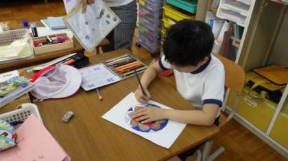 3組は,塗り絵を楽しんでいます。2年生は,学習園で育てているサツマイモに水やりをしています。6年生は社会で,聖徳太子の後,だれが,どのような国づくりをしたのかについて調べています。