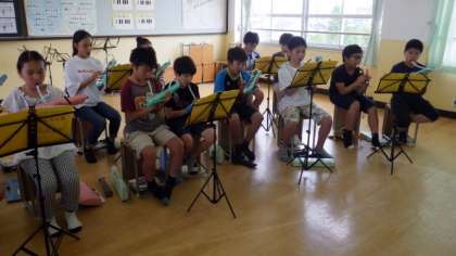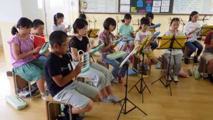 鍵盤ハーモニカやリコーダーを使った合奏の練習をしています。