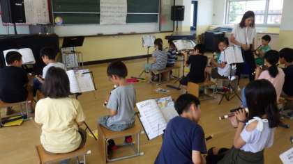 音楽室でリコーダーの練習をしています。