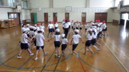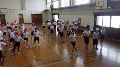 みさきの家野外活動に向けて,「マイムマイム」の踊り方を覚えて楽しく踊っています。