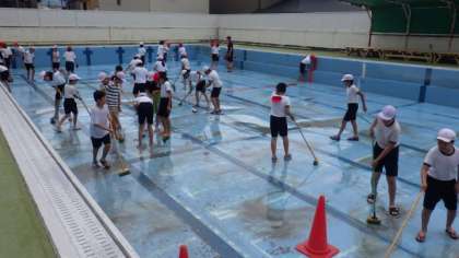 6時間目は6年生がプール清掃をしてくれました。水泳学習に向けて,プールの中やプールサイドをきれいにしました。6年生の皆さん,学校の皆のためにありがとうございました。