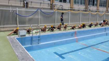17日(月)1年生・3組体育 水慣れ