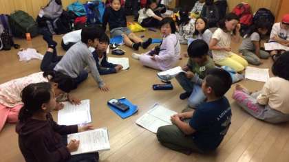 2日目の活動がすべて終わりました。磯観察や野外炊事など,今日一日のいろいろな活動をふり返りました。