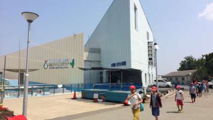 志摩マリンランドに到着しました。マリンランドでは,グループ活動で館内を見学します。はじめに,えさやり体験とペンギンタッチをしました。