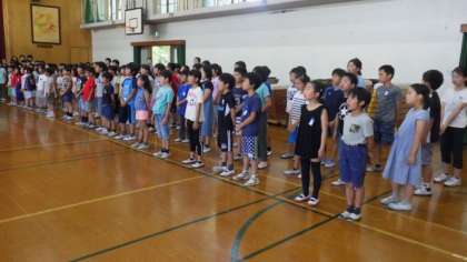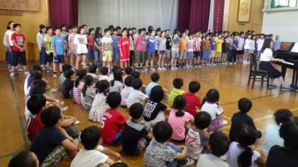 歌う姿勢を確認したり,低・中・高学年それぞれのパートを聴きあったりしました。上級生のすてきな歌声に,みんな自然と拍手していました。