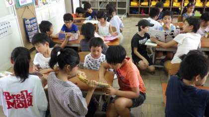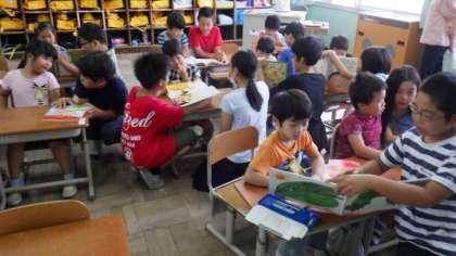 今朝の「さわやかタイム」は,たてわり読み聞かせを行いました。きょうだい学年(1・6年生,2・5年生,3・4年生)で,上級生が読み聞かせをしました。みんな自分で本を選んで,一生懸命読み聞かせをしていました。