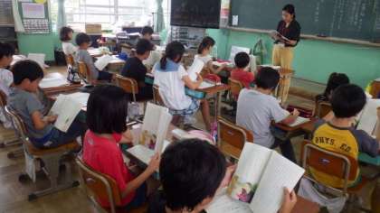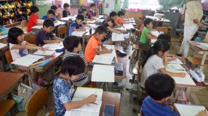 3組は一日の予定を書いたり,ひらがなのパズルをしたりしています。2年生は算数で,100をこえる数の学習をしています。4年生は国語で,物語文「一つの花」の学習をしています。