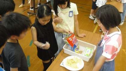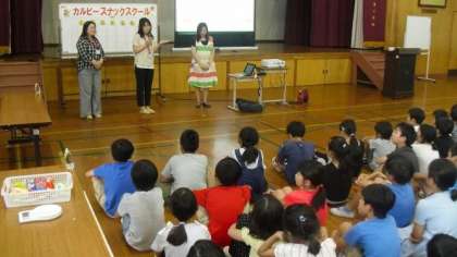 参観デーの3・4時間目に,おやつの役割と正しいとり方についての出前授業をしていただきました。お話を聞いたり,1回のおやつでどれくらいの量をとるのがよいか予想したりしました。