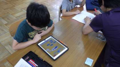 3組は国語で,タブレットを使って漢字の読みの学習をしています。6年生は外国語活動で,いろいろな英語の言葉を集めています。3年生は国語で,説明文の学習をしています。