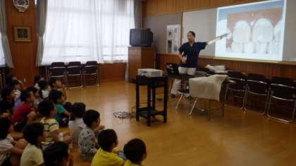 歯科衛生士の方を講師にお招きし,むし歯になる理由や歯のみがき方について教えていただきました。これからも,歯みがきの習慣を続けてほしいと思います。